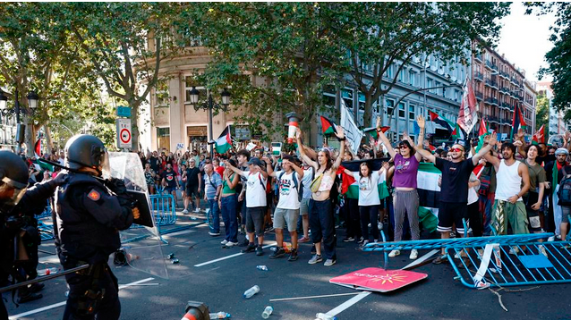 La Red Intercívico republicana apoya las manifestaciones que en el día de ayer, 14 de septiembre de 2025, impidieron la terminación de la última etapa de la Vuelta Ciclista a España. Estas manifestaciones eran en protesta por la participación en este evento deportivo del equipo sionista Israel Premier Tech a causa del genocidio que el estado de Israel está cometiendo en Gaza. Nuestra organización condena el terrorismo de Hamas y reconoce el derecho del estado israelí de defenderse de él y reclama la inmediata devolución de los rehenes que aún permanecen en poder del grupo terrorista, pero también condena el genocidio y la hambruna que Israel está provocando en la franja de Gaza con el pretexto de combatir dicho terrorismo.
